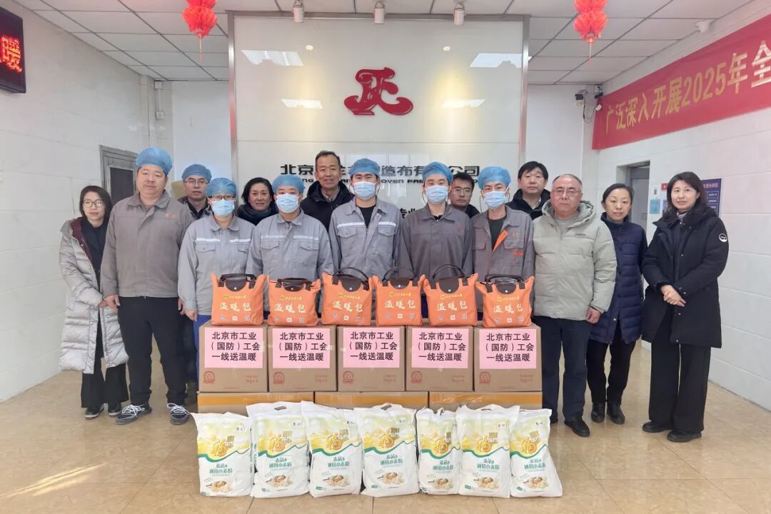 寒冬送暖,情系一線。1月22日,北京市工業(yè)(國(guó)防)工會(huì)主席孫宇一行,在北京時(shí)尚控股公司黨委副書(shū)記、職工董事、工會(huì)主席尹曉燕等陪同下,來(lái)到北京清河三羊毛紡織集團(tuán)有限公司所屬北京京蘭非織造布有限公司,開(kāi)展“冬送溫暖”慰問(wèn)活動(dòng),為寒冬中堅(jiān)守崗位的一線職工送去工會(huì)組織的關(guān)懷與溫暖。